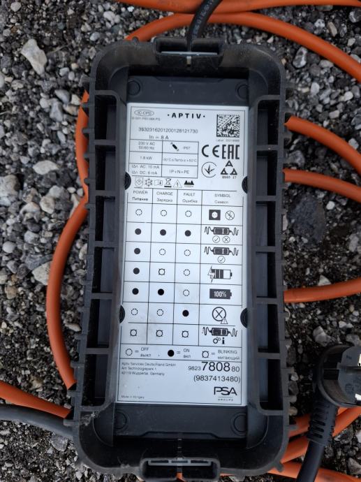 Orginal kućni punjač za električna vozila i Hybride marke Aptiv,prva ugradnja za Peugeot,Citroen,Fiat,Opel,kataloški broj punjača 9823780880 i 9837413480,jako malo korišten,ispravan,spaja se na običnu kućnu utičnicu.