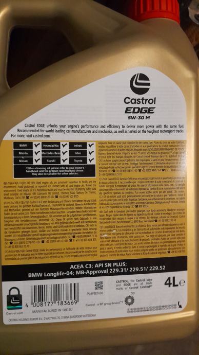 Optimizacija performansi motora: Castrol EDGE 5W-30 LL pomaže u maksimiziranju kratkoročnih i dugoročnih performansi motora. Smanjuje nakupljanje naslaga u motoru, što doprinosi bržem odzivu motora.