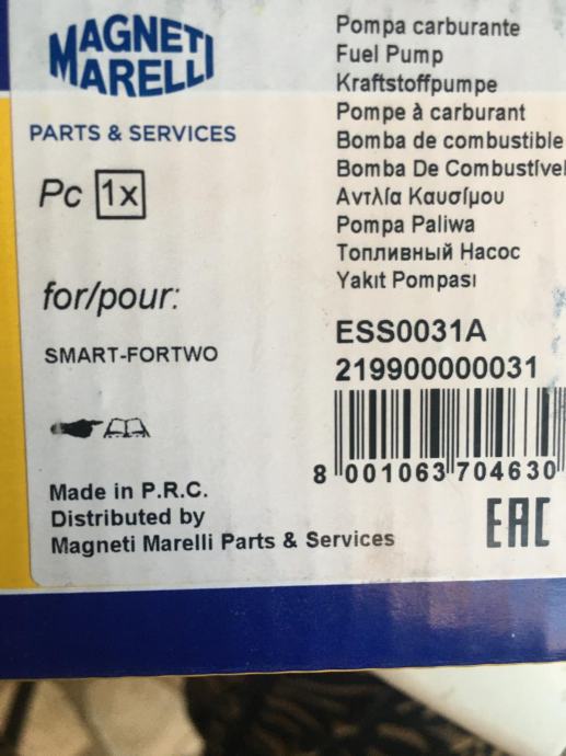 Nova pumpa od goriva za smart 0,8 cdi 30kw, 2004-2007.god.