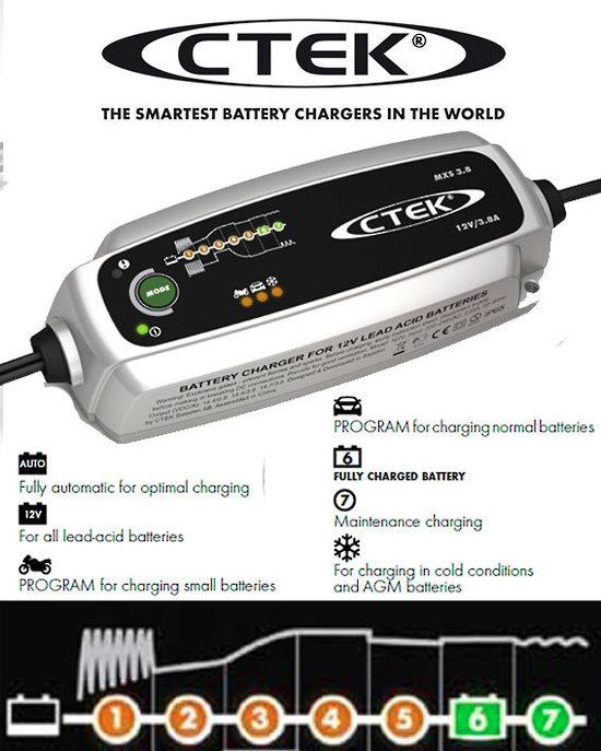 je napredni mikroprocesorski kontroliran punjač baterija s patentiranim održavanje Float / Pulse za uporabu na baterije od 1.2Ah do 85Ah. MXS 3.8 rješava širok spektar problema baterija i idealan punjač za svakodnevnu uporabu. Značajke MXS 3,8 uključuju dijagnozu stanja baterije utvrditi može li primiti i zadržati naboj, patentirani automatski desulphation program i poseban 'Pahuljica' način za optimalno punjenje na hladnim zimskim danima. Patentirani održavanje Float / Pulse znači MXS 3,8 idealnim za dugoročno održavanje. Cijeli proces testiranja akumulatora, punjenje i održavanje lako pratiti na jasnom LED zaslonu.
