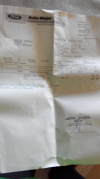ogledalo retrovizora original za Fiestu 2002-2008.god.Dostava prema dogovoru.