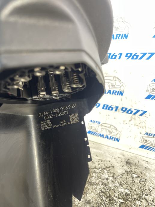 Odgovara za modele: A KLASA (W169) > 08-12, A KLASA (W176) > 15-18, B KLASA (W246) > 11-14, B KLASA (W246) > 14-18, A 447 900 77 03, A4479007703, 447 900 77 03, 4479007703MARIN:2514***CIJENE SU INFORMATIVNOG KARAKTERA***ZA SVE INFORMACIJE NAZOVITE TOKOM RADNOG VREMENA : PON - PET : 09-18h SUB : 09-14hDijelovi za SVA MERCEDES VOZILA !!!!️W202 W203 W204 W205 W207 W208 W209 W210 W211 W212 W213 W215 W216 W218 W219 W220 W221 W222 W168 W163 W164 W169 W245 W246 W176 W171 W172 W166LIMARIJA – (amortizer zadnje haube, pvc zaštita zadnja, lajsna vrata, pvc zaštita prednja, zaštita ispod motora, pvc oplata blatobrana, poklopac motora, brava zadnje haube, hauba prednja, hauba stražnja, vrata prednja lijeva, vrata prednja desna, vrata stražnja lijeva, vrata stražnja desna, branik prednji, branik stražnji, vezni lim, far, lampa zadnja vanjska, lampa zadnja unutarnja, žmigavac, retrovizor, vezni lim stražnji, traverza, nosač branika prednji, nosač branika stražnji, prag, rubnjak, mulda, blatobran, stranica zadnja, krov, pvc zaštita notora, pvc obloga blatobrana, kvaka vanjska, brava prednje haube, brava stražnje haube, guma oko vrata, vezni lim stražnji)MEHANIKA – (sajla gasa, sajla ručne kočnice, sajla mjenjača, remenica radilice, španer kanalnog remena, kočiona kliješta, glavčina prednja, glavčina stražnja, vilica, vilica gornja, vilica donja, vilica ravna, vilica s, naba, lager, most prednji, most stražnji, spona, krajnik, letva volana, amortizer, balans štanga, opruga, nosač motora, skija ispod motora, turbina, usisna grana, servo pumpa, lajtung serva, hladnjak zraka, cijevi hladnjaka zraka, felge čelične, felge aluminijske, bregasta osovina, klip, klipnjača, blok motora, glava motora, klackalica, sajle mjenjača, šalthebla, sajla ručne kočnice, kučište filtera zraka, kučište filtera goriva, vakum pumpa, lager, naba, dizna, egr ventil, šarafi kotača)ELEKTRIKA – (otpornik grijanja, električni uložak brave, bobina, anlaser, alternator, relej, centrala zračnih jastuka, kompijuter motora, brava, podizač stakla, prekidač podizača stakla, bobina, razvodnik paljenja, transformator fara, kompijuter letve volana, električna letva volana, električna servo pumpa, senzor radilice, senzor bregaste, senzor ABS-a, agr ventil, vakum ventil, klapna gasa, pumpa goriva, dizne, rampa za dizne, mjerač protoka zraka, senzor zračnog jastuka, prekidači svijetla, prekidači brisača, prekidač, kutija osigurača, radio uređaj, cd uređaj, displej, kilometar sat, instalacija, priključak, dizna)MOTOR – (goli motor bez dijelova opisanih u grupi mehanika i elektrika)UNUTARNJA OPREMA – (zračni jastuk, sigurnosni pojas, zračna zavjesa, garnitura zračnih jastuka, cd izmjenjivać,kopče sigurnosnog pojasa, maska cd uređaja, tapecirung vrata, krovni tapecirung, sjedalo, armatura, središnja konzola, sjenilo za sunce, ručica mjenjača, tepih, plastke razne, pepeljara, unutarnji retrovizor)SUSTAV HLAĐENJA I KLIMA – (kučište ventilacije, ventilator klime, ventilator hladnjaka vode, hladnjak klime, hladnjak vode, lajtung klime, crijevo vode, isparivać, presostat, hladnjak grijanja, kompresor klime, kompijuter klime, relej klime)STAKLA I BRISAČI – (staklo prednje, staklo stražnje, bočno staklo klizno, bočno staklo fiksno, škare brisača, motor brisača, ruka brisača prednja, metlica brisača, ruka brisača stražnja)POGONSKI SUSTAV – (lager kotača, vijci kotača, felga čelićna, felga aluminijska, felge set, mjenjač, poluosovina lijeva, poluosovina desna, homokinetički zglob, kuplung set, zamašnjak, lamela, druk lager, korpa)ISPUŠNI SUSTAV – (fleksibilno crijevo, srednji lonac, zadnji lonac, ispušna grana, katalizator, dpf filter, lambda sonda, senzor temperature dpf