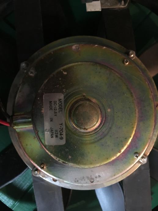 Ventilator "ELECTRO FAN" Made in USA sa Japanskim motorom Y 704-9 12 volti i termostatom koji se regulira. Pogodan za montažu na sve hladnjake vozila, brodova, strojeva i drugo kao osnovni ili dodatni. Skinut sa Jaguara gdje je služio kao dodatni ventilator. Ispravan