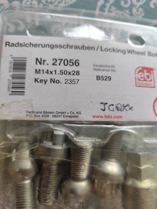 Prodajem set od 4 kom. vijaka za kotače sa ključem univerzalni, dimenzije vidljive na slici.