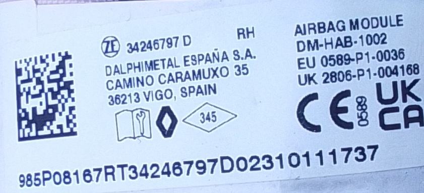 Zračni jastuk Dacia Duster 3 2022- / desni / airbag / 985P08167R /