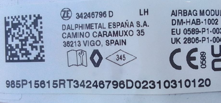 Zračni jastuk Dacia Duster 3 2022- / lijevi / airbag / 985P15615R /
