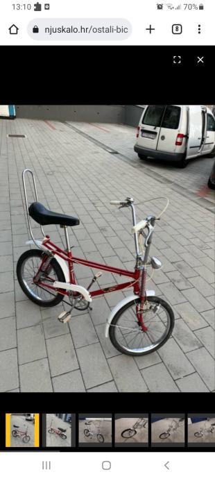 Prodajem izuzetno očuvan bicikl FBP Partizan,1974 godina proizvodnje.tvornička boja sajle i gume Obilićevo.Sve potpuno ispravno i kompletno.Nema niti jedan zamjenski dio.Tri brzine u zadnjem kotaču.Bicikl star 48 godina teško ćete pronaći u ovakvom stanju(bio kratko korišten i od tada garažiran u suhom i tamnom prostoru)