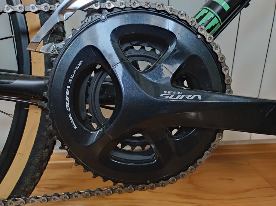 Čelična rama, 4130 Cr-Mo, pouzdana 3x9 Sora, Shimano hollowtech 2 osovina pogona, ručice kočnica s podešavanjem reacha za kraće prste, WTB Resolute 650Bx42 gume, Tektro Spyre-C mehaničke disk kočnice itd.