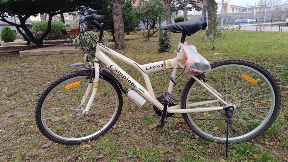 Prodaje se bicikl s fotografija, očuvan, nekorišten godinama i čuvan u zatvorenom i grijanom prostoru. Ne znam koliko brzina ima jer nije vožen zaista dugo. Uz njega ide potpuno novi sic.