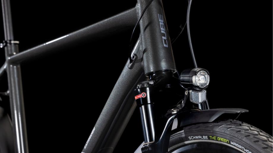 Veličina rame:62 cmbrand:CubeOkvir:Aluminium Superlite, Trekking Comfort, Integrated Carrier 3.0, Double ButtedVilica:SR Suntour NCX D LO Air, 63mm, LockoutLežaj vilice:VP Integrated, Top 1 1/8", Bottom 1 1/2"Lula volana:CUBE Performance Stem Pro, 31.8mmVolan:CUBE Comfort Trail Bar, 680mmGripovi / Traka volana:ACID Travel ComfortPrednji mjenjač:Shimano Cues FD-U6010, Top-Swing, 31.8mmStražnji mjenjač:Shimano Cues RD-U6020-SGS, 10-SpeedRučice mjenjača:Shimano Cues SL-U6000, Rapidfire-PlusKočnice:Shimano BR-MT200/UR300, Hydr. Disc Brake, PM/FM (160/180)Osovina pogona:Shimano BB-MT501, 68mm BSAPogon:Shimano Cues FC-U6000, Hollowtech ll, 46x30T, ChainguardPedale:CUBE PP MTBLanac:KMC xGlideKazeta:Shimano Cues CS-LG400, 11-39TPrednja glavčina:Shimano DH-3D37, Hub Dynamo, QR, CenterlockStražnja glavčina:Shimano FH-TC500-HM, 12mm Through Axle, CenterlockObruči / Kotači:CUBE EX25, 32H, Disc, Tubeless ReadyVanjske gume:Schwalbe Marathon Green, Perf, 47-622Sjedalo:ACID Sequence Pro 160Cijev sjedala:CUBE Performance Post, 27.2mmPrednje svjetlo:CUBE Shiny 50Stražnje svjetlo:ACID Mudguard Rear Light PRO-D, 6V, ACZvono:Easy BellBlatobrani:ACID 56 Integrated Carrier 3.0Nosač tereta:ACID Integrated Carrier 3.0, CUBE Adapter CompatibleNogar:ACID FM Pure KickstandTežina:16,8 kg