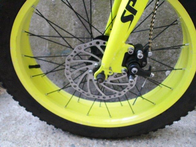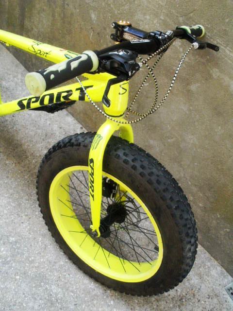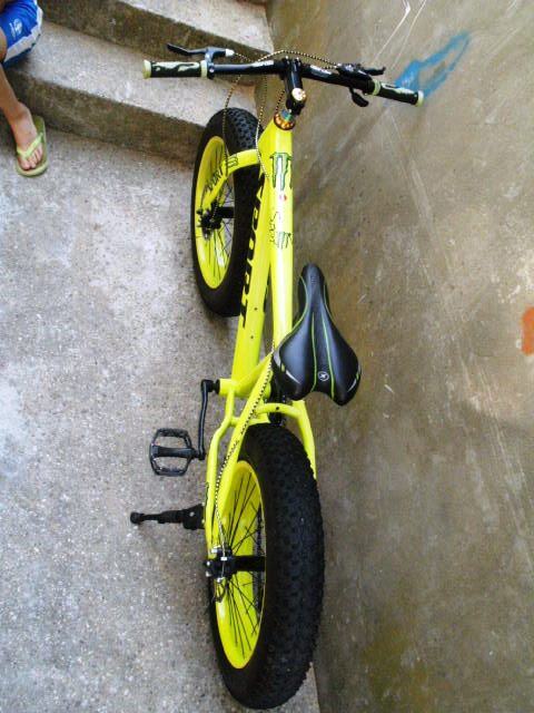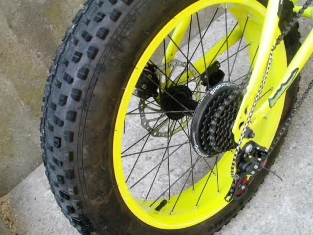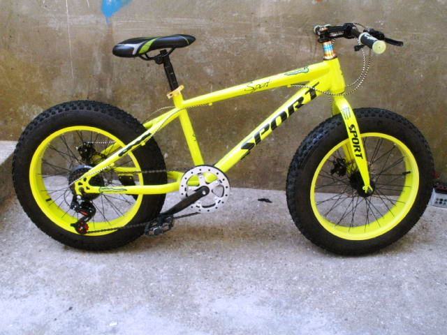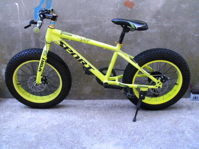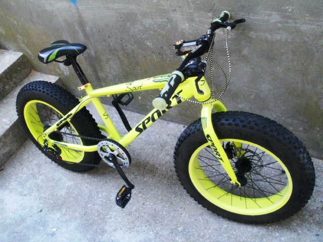 Atraktivni fluorescentni dječiji bicikl Sport fat boy / fat bike sa velikim debelim robusnim gumama ima sedam brzina, disc sprjeda i pozadi, Shimano mjenjač i kočnice, gume su kao nove.