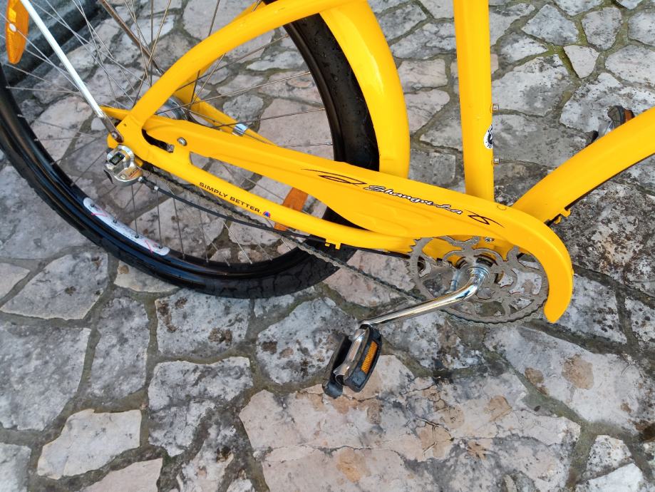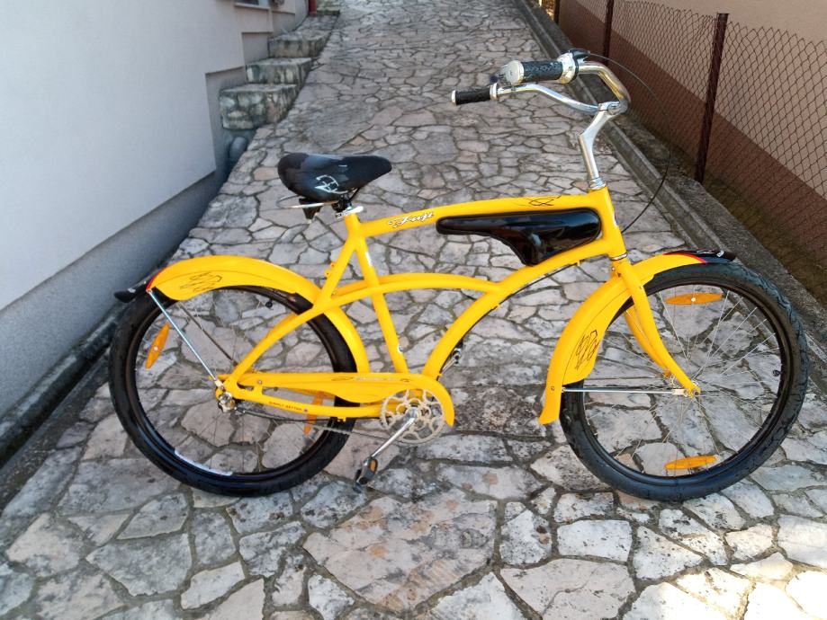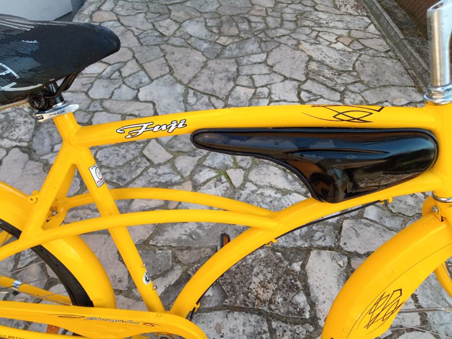 Odličan Fuji cruiser, kotači veličine 26", aluminijska rama veličine 22", Shimano Nexus 3(tri brzine u nabi stražnjeg kotača-funkcionira odlično). Opremljen blatobranima, zvoncem, katadiopterima, lancobranom, gume odlične, na sjedalu vidljiva oštećenja ali ga je šteta mijenjat jer je preudobno.