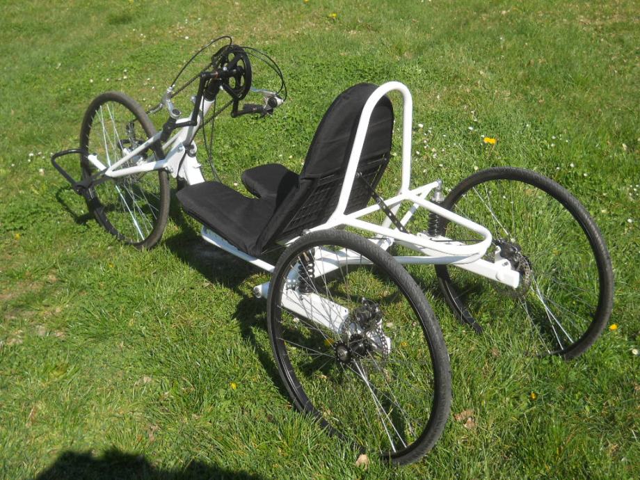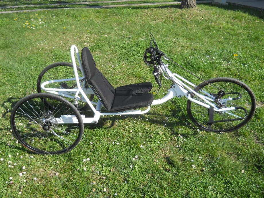 Prodajem Hand Bike Sport.Poseduje 7 brzina ,suspenzije na zadnjim točkovima .Podešavanje po visini ,duzini i nagib sedišta .Na svim okretnim i gibljivim mestima nalaze se masinski ležajevi ,tačnije 14 lezajeva. Ram čelik 23 kg kompletnog tricikla.