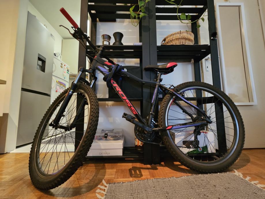 Bicikl kupljen prošlo ljeto. Jako malo vožen, stanje kao novo, nema nikakvih oštećenja. Skladišten u stanu. Uz bicikl poklanjam i lanac vrijednosti 30ak eura.