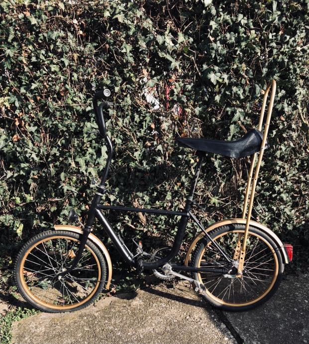 Zlatno crni pony sa banana sicom. Fali nogica za parking i prednju gumu treba zamijeniti.