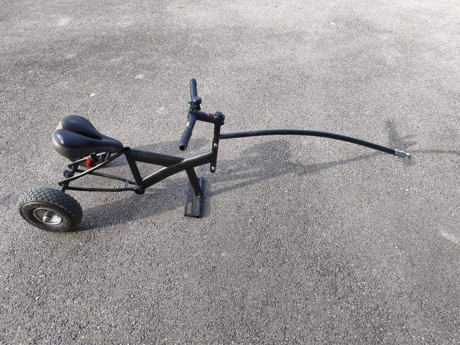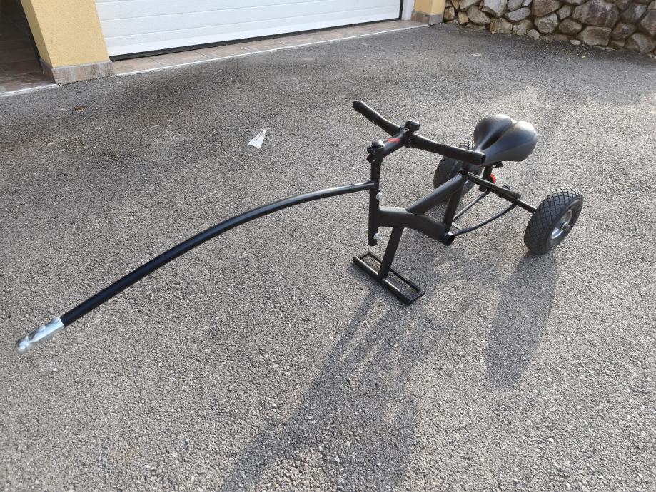 Prodajem prikolicu za bicikl, za voziti djecu do cca 7 god. Ima original kuku koja se montira na cijev sjedala. Prikolica je sklopiva i stane u prtljaznik auta.