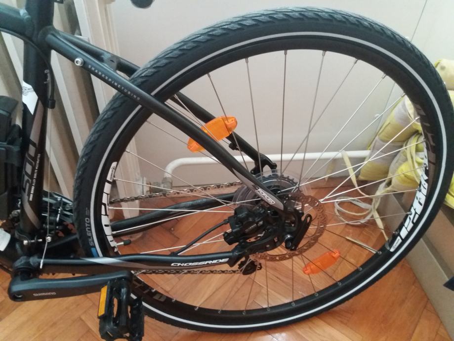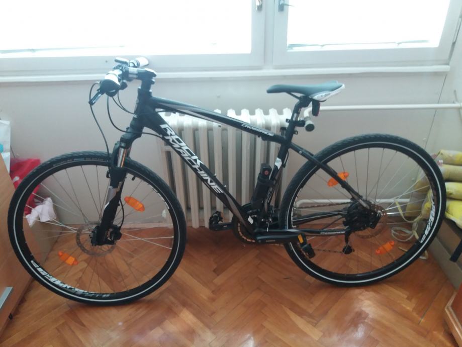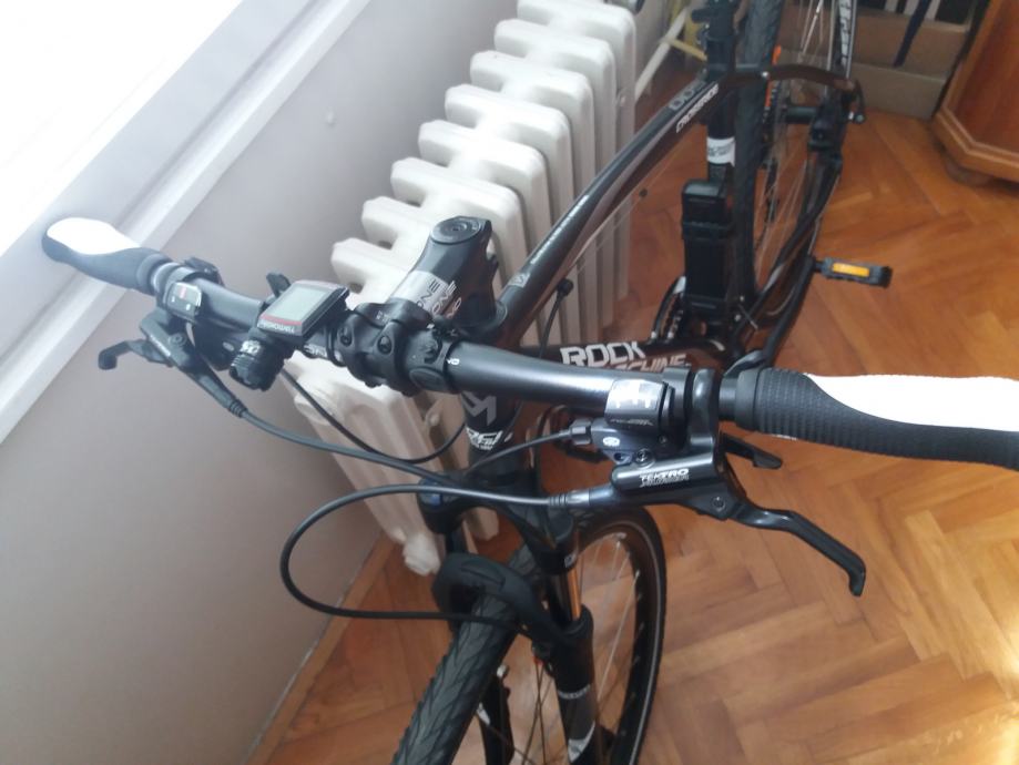 Rock Machine 500, star 2 godine, kupljen u Panex Dynamic u Zagrebu, u trgovini se prodaje za oko 4500 kn. Ima full opremu, prilažem račun i garantni list. Vrlo malo vožen (cca 1000 km) i garažiran. Veličina rame 18'', Tektro disk kočnice, Acera i Deore mjenjači, brzinomjer, dnevna svjetla, noćno LED svjetlo punjivo preko USB-a, lokot s kodiranim ključem.