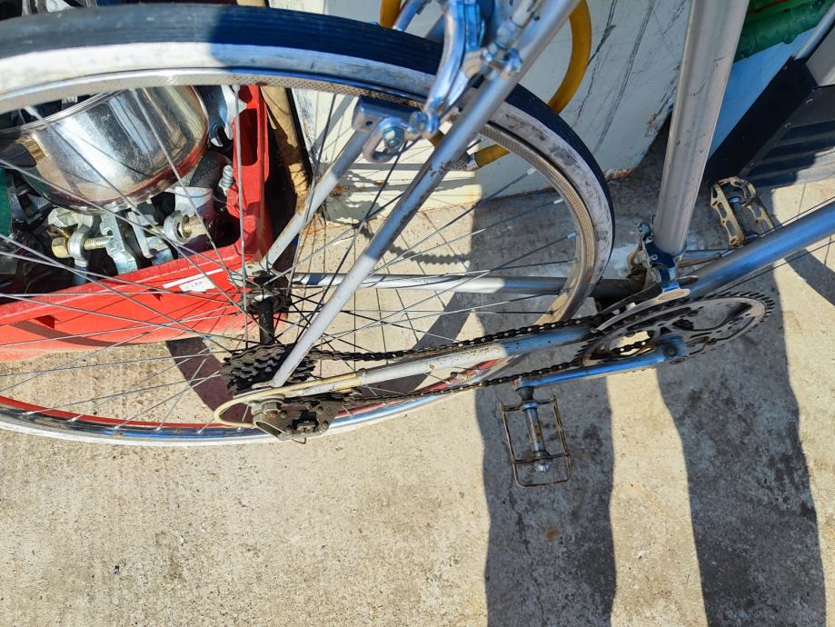 Prodajem ROG Touriste specijalku, klasični cestovni bicikl jugoslavenske proizvodnje. Radi se o pravoj vintage specijalki s karakterističnim zakrivljenim upravljačem, laganim okvirom srebrne boje i višebrzinskim pogonom. Bicikl dolazi s originalnim ROG oznakama i naljepnicama, što ga čini zanimljivim primjerkom za ljubitelje starih bicikala.