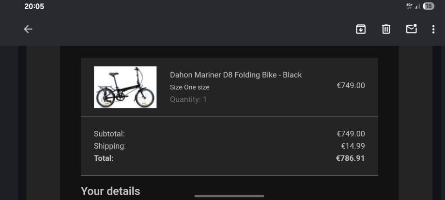 Bicikl je u originalnom stanju. Uslijed nedostatka određenih komponenti nakon korona krize, bicikl je tvornički opremljen gumama koje nisu Kenda ili Schwalbe, mašinica nije Shimano, već Dahonova (8 brzina iako na njoj piše 9 brzina - ima članak o tome na Redditu).