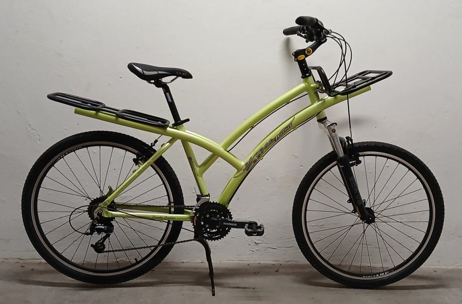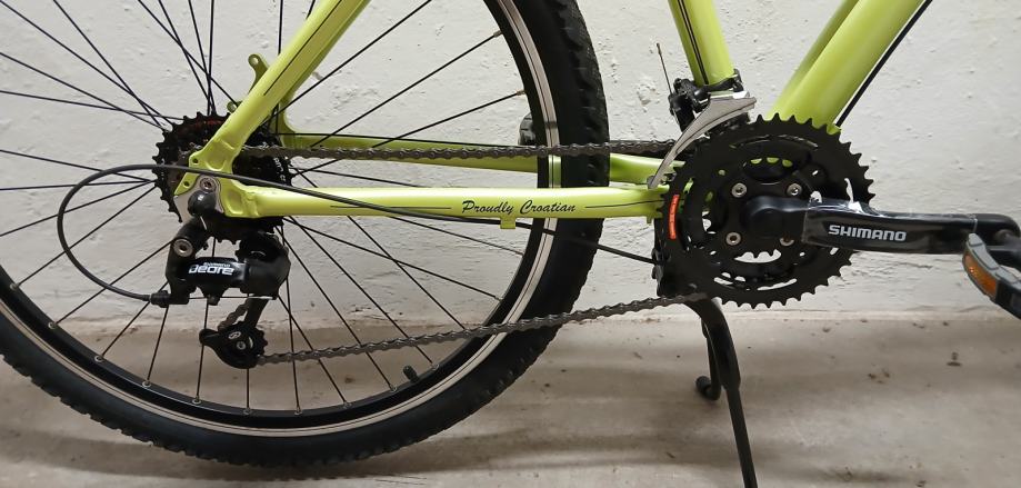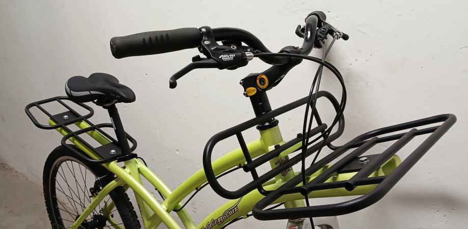 Novi i nevoženi teretni bicikl nosivosti 150 kg (17" rama) u boji limete povoljno prodajem. Alu rama (GoldieBoldie) s doživotnim jamstvom i odličnom Suntour vilicom opremljena je japanskim Shimano Deore/Alivio dijelovima. Bicikl ima i centralni aluminijski nogar koji ga drži okomitim prilikom utovara raznovrsnih tereta. Vrlo je lagan (samo 13.5 kg) i optimalan za ljepši spol zbog atraktivne boje i multifunkcionalnosti.