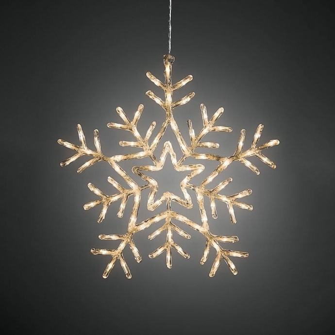 LED svjetleća pahulja u nizu na prozirnoj žici. Veličine: 58 x 57 cm. Broj lampica: 100 kom. Svjetlo toplo bijelo. Napon: 220-240V- 50/60Hz. Dužina kabla od lampice do utikača: 5 m. Dimenzije pak: 58x5x59 cm. Za unutarnju/vanjsku uporabu.