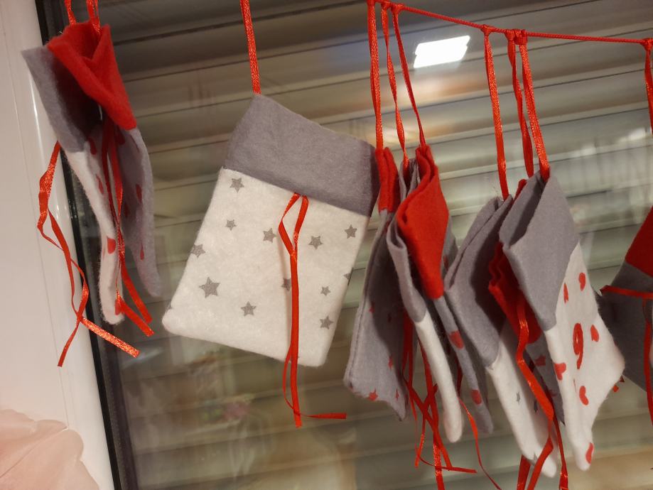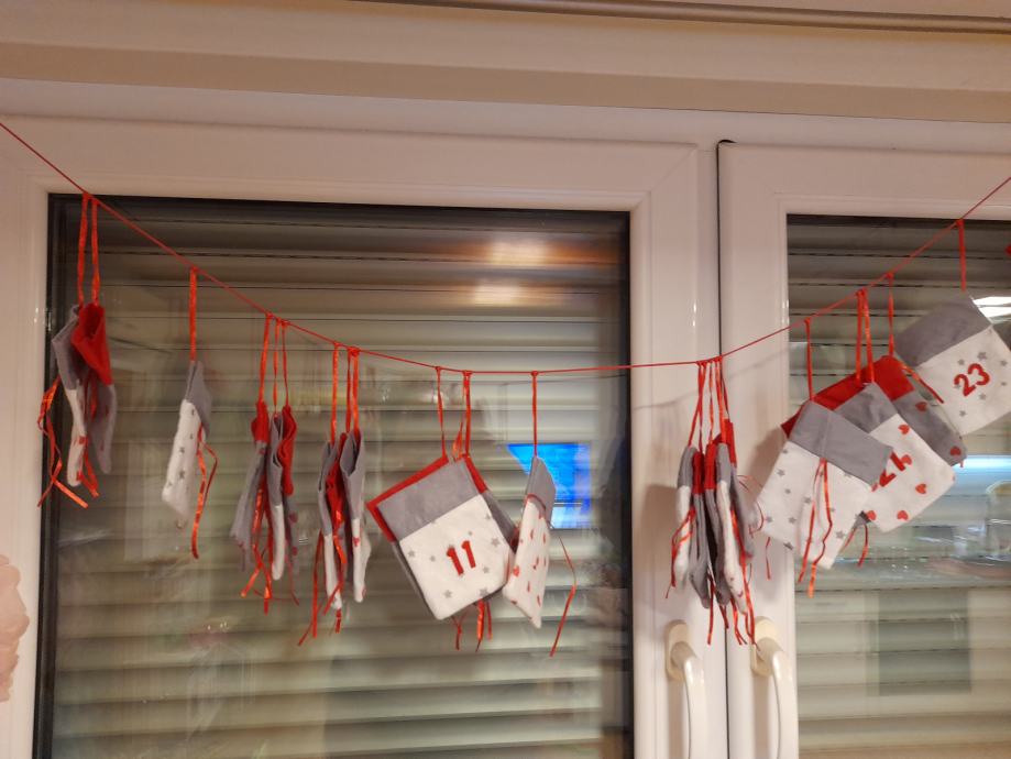 Adventski kalendar girlanda, nove, vrecice se mogu zavezati.