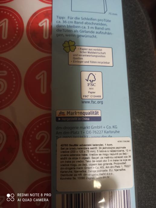 prodajem adventski kalendar u kojem su 24 papirnate jednobojne vrećice (200x125x75mm)