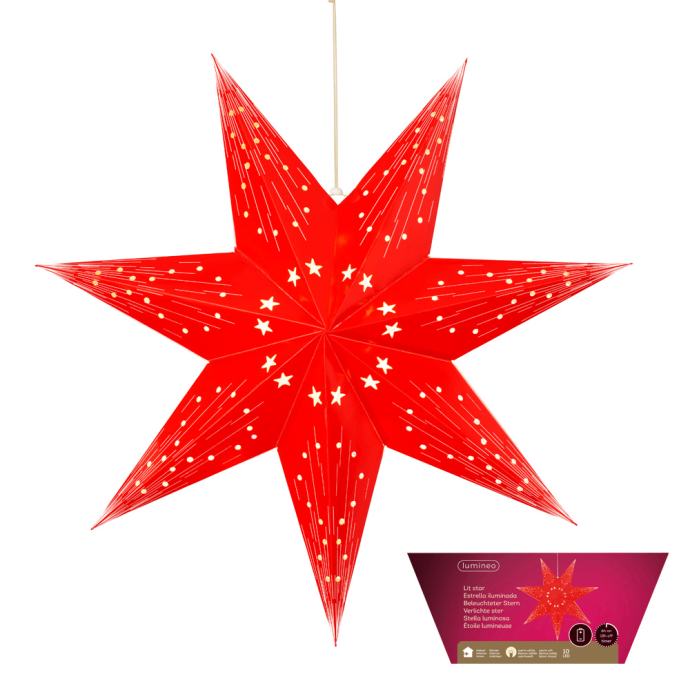 BOŽIĆNA ZVIJEZDA S LED SVJETLIMA 10/1 NA BATERIJE 40 cm - CRVENA PAPIR