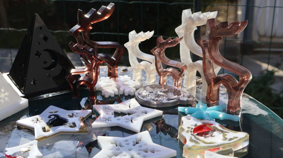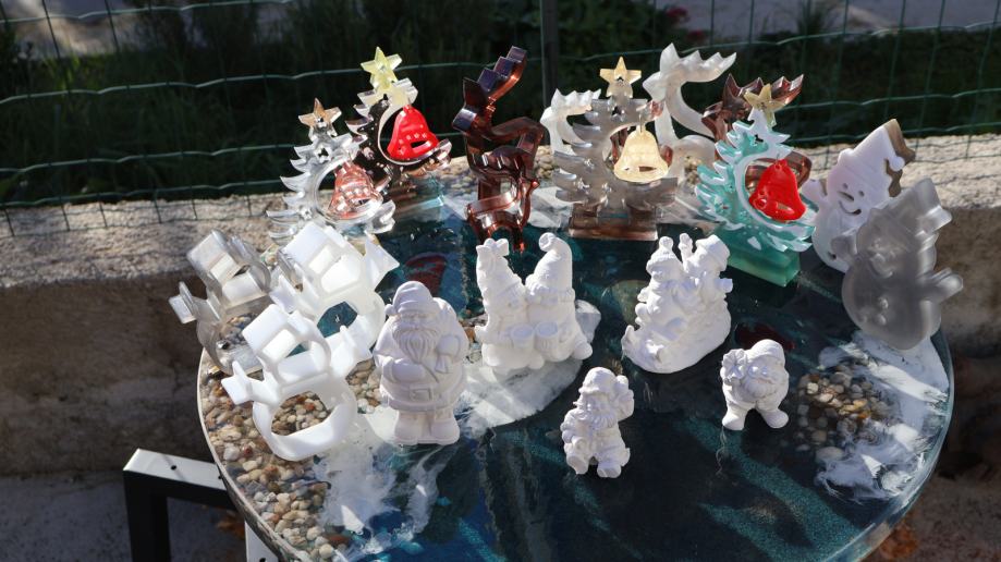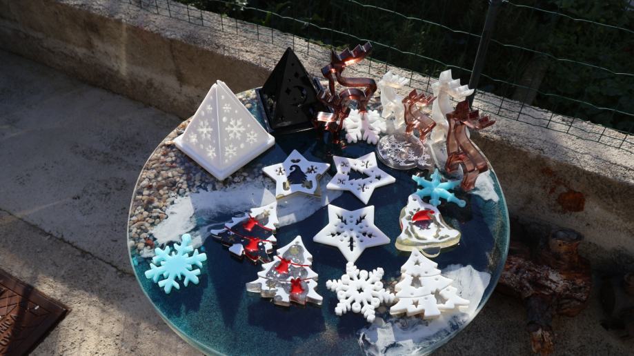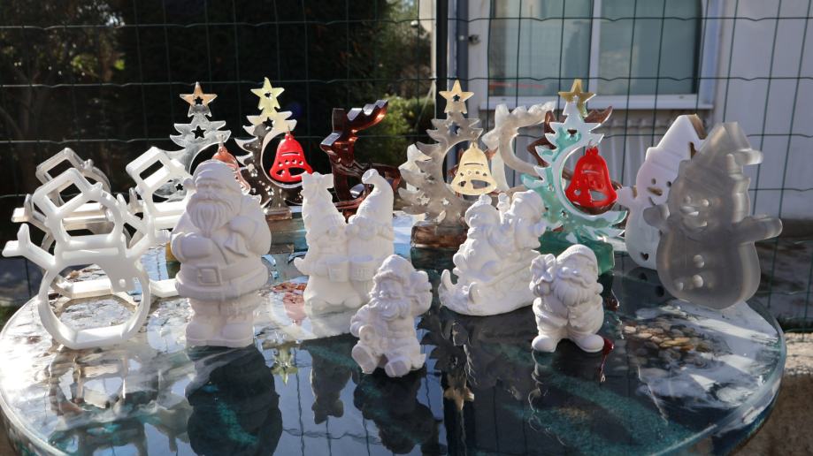 Božićni i Novogodišnji predmeti - ukrasne figurice izrađene lijevanjem u kalupe epoxy smole ili sintetičkog gipsa.