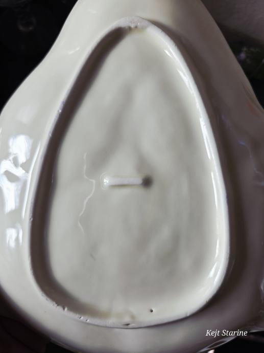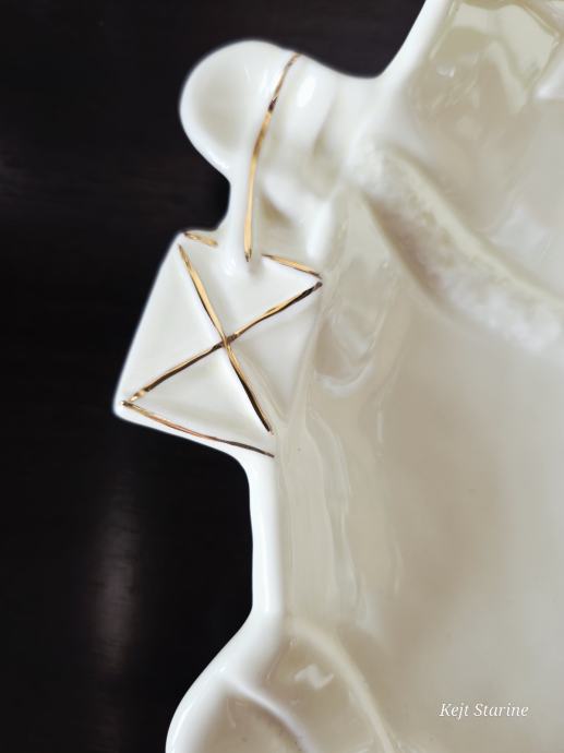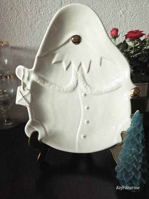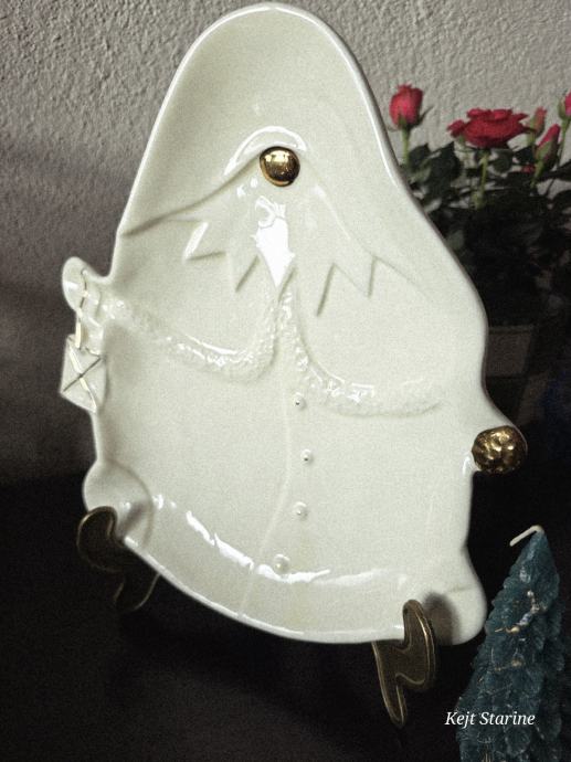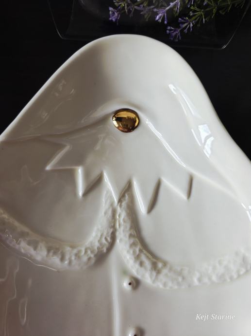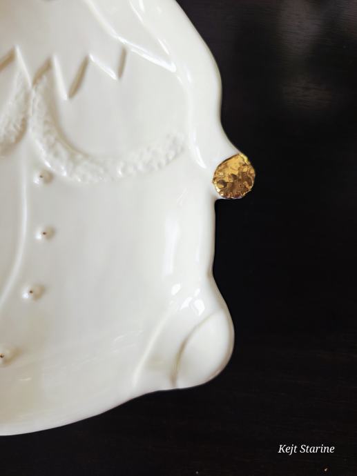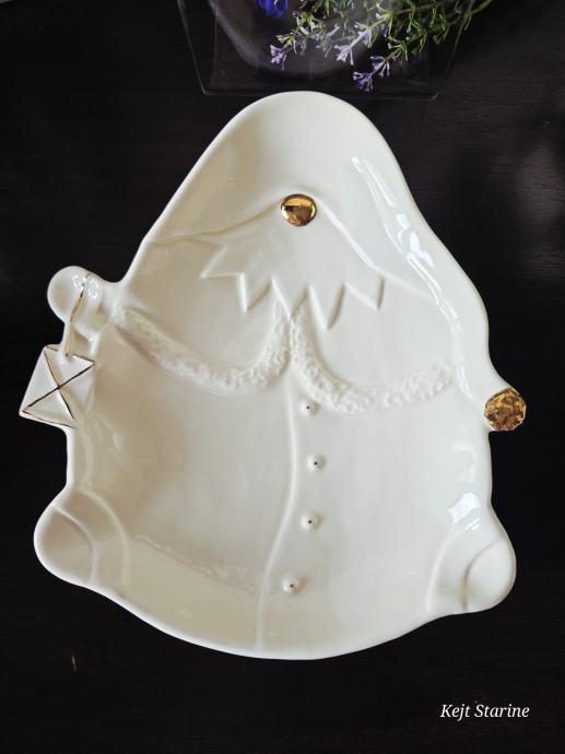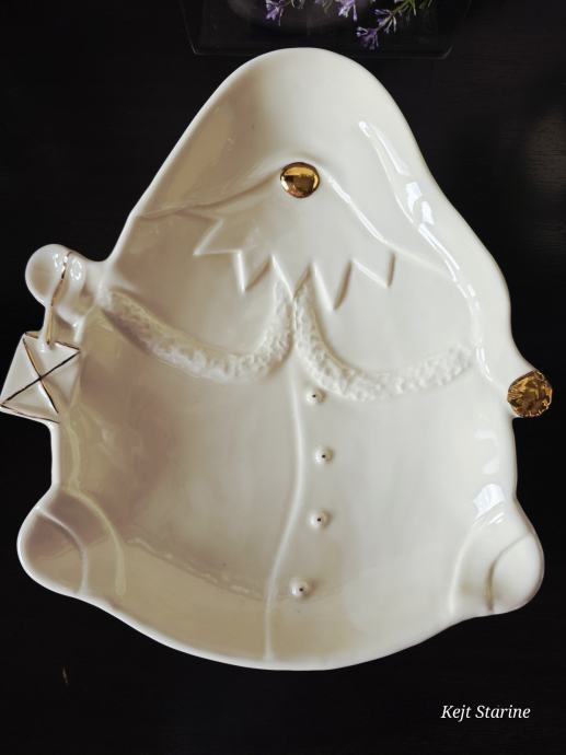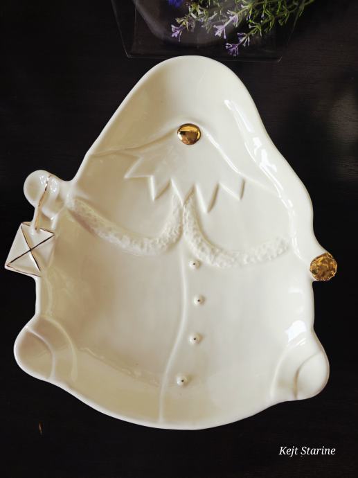 Pladanj u obliku gnoma. Bez tragova korištenja. Boja vanilije. Glazirana keramika, sa ručno obojenim zlatnim detaljima.