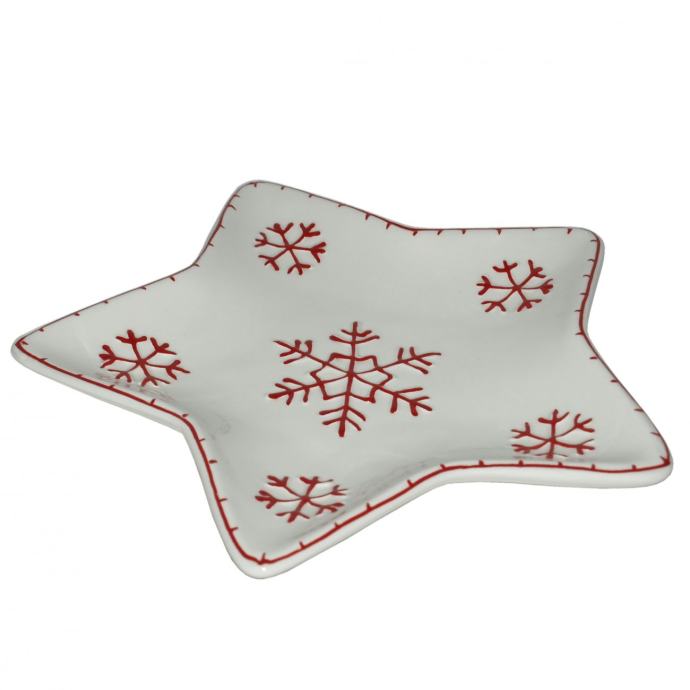 Porculanski tanjur je ukrašen pahuljicama.