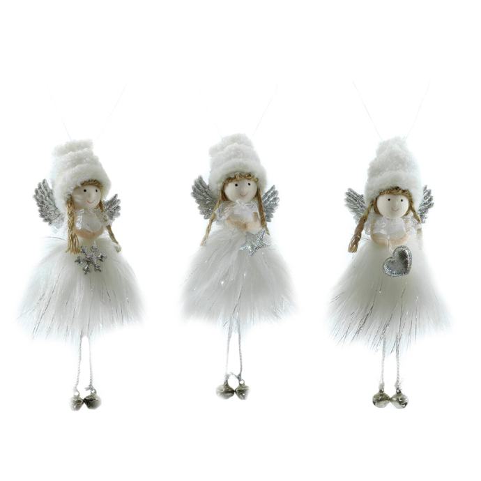 Dekoracija za bor u obliku anđela, visine 20 cm, dolazi u bijelo-srebrnoj boji.