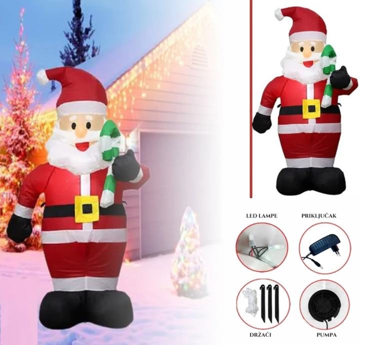 Uživajte u čaroliji Božića s ovim predivnim Djed Božićnjakom na napuhavanje koji će unijeti radost u vaš dom! Naručite svoj Djed Božićnjak već danas i neka blagdanski duh zavlada vašim prostorom!