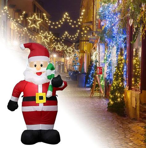 Unesite blagdanski duh u svoj dom s našim Djed Božićnjakom na napuhavanje visine 1.2 m! Ovaj simpatični Djed Božićnjak savršen je za ukrašavanje vašeg vrta, dvorišta ili unutarnjeg prostora, donoseći radost i veselje svima koji ga vide.
