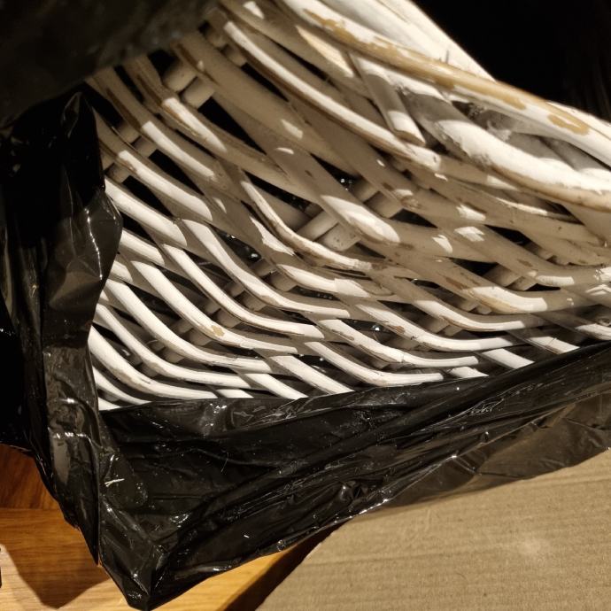 Košara za bor naručena online.Uživo nije ista nijansa kao na slici, bijela prevladava. Meni boja nije toliko bitna, ali je premala za stalak za bor. Promjer je 60.