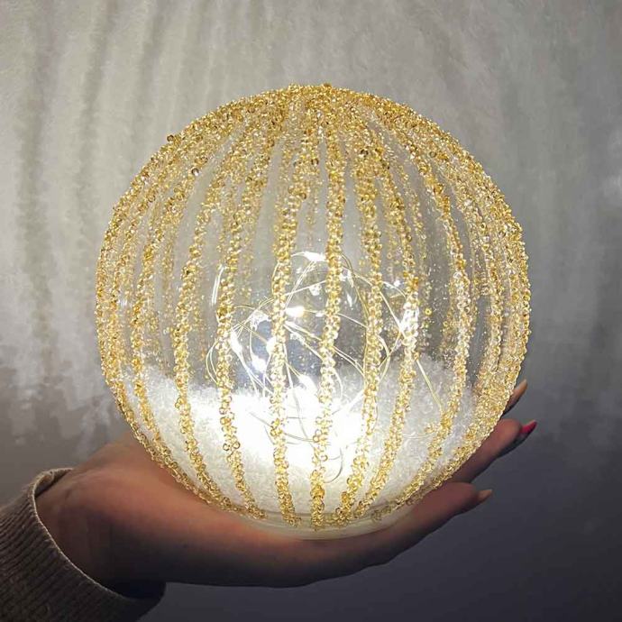 Kugla s LED svjetlima na baterije u zlatnoj glitter liniji 15 cm predstavlja savršenu kombinaciju stila i funkcionalnosti.