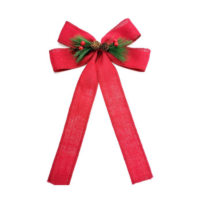 Dekoracija na mašni: borove graničice, češer, crvene bobice.