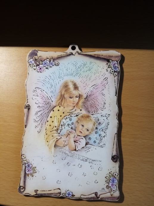 Slika andela, drvena podloga, novo, nekoristeno