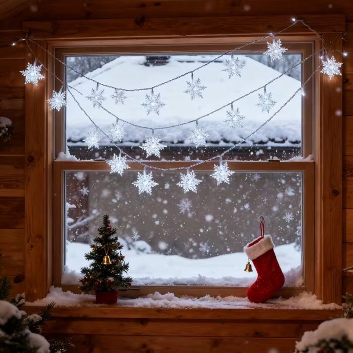 Vilinska rasvjeta u obliku snježnih ili toplo bjelih pahuljica za dom bor prozore zidove ulaze idealan zimski ukras