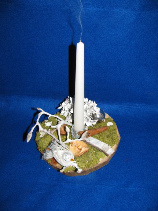 Novi sviječnjak rađen od okruglog odreska drveta.
