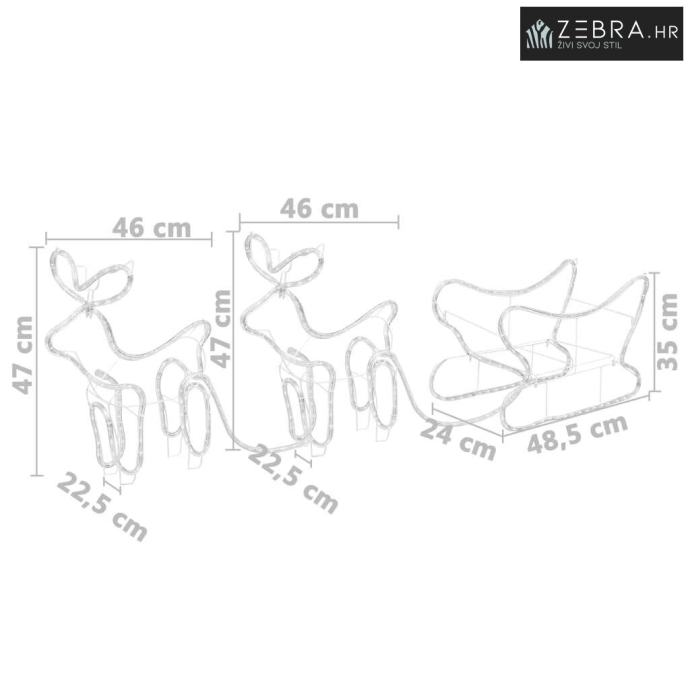 Ukrasni božićni sobovi i sanjke vanjski s 576 LED žarulja - Hladna bij