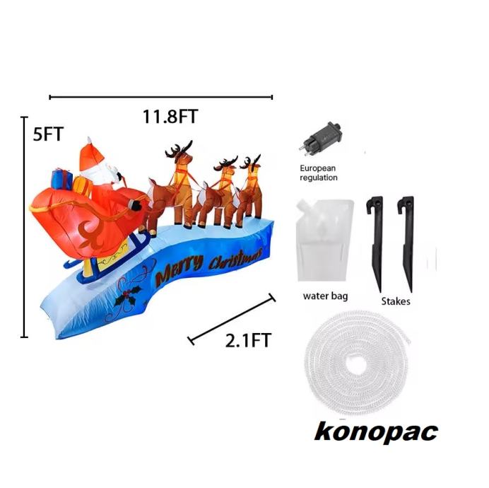 Božićni LED osvijetljeni kućni ukras za dvorište, ukras za zabavu, napuhani saonici Djeda Mraza, sobovi, božićni pribor, svečana poklon igračka