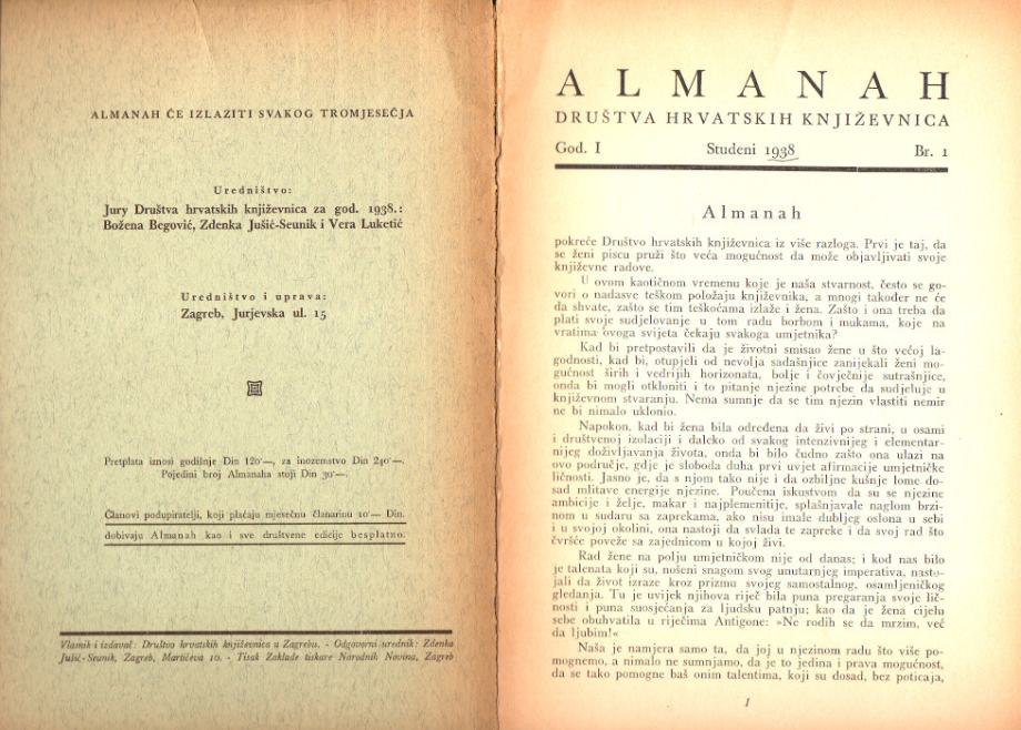 Almanah Društva hrvatskih književnica (God.1: br.1 / 1938.)