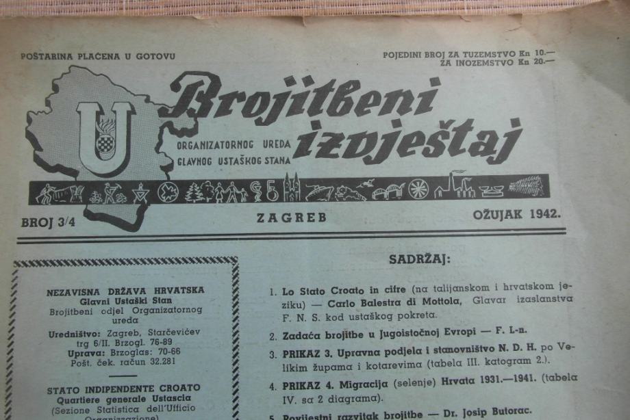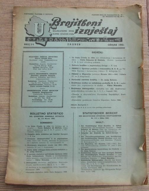 Brojitbeni Izvještaj organiziranog ureda glavnog ustaškog stana 1942 g