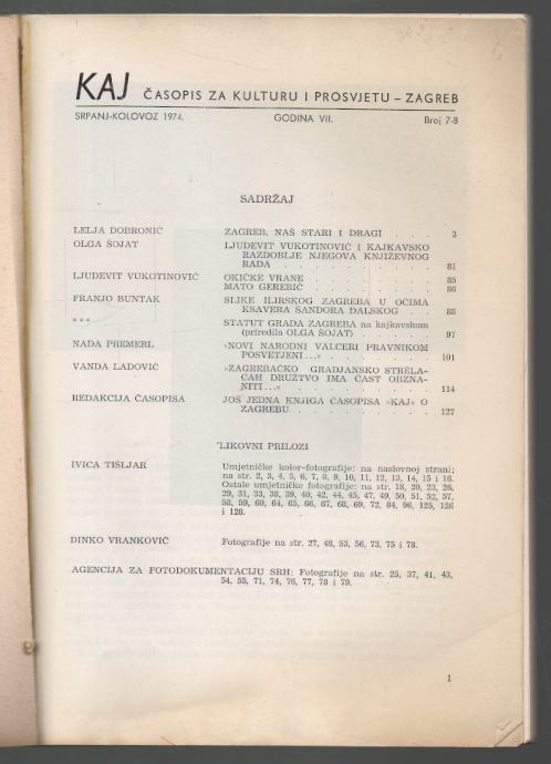 Časopis KAJ. God.VII: br.7-8 / 1974. Poseban broj.