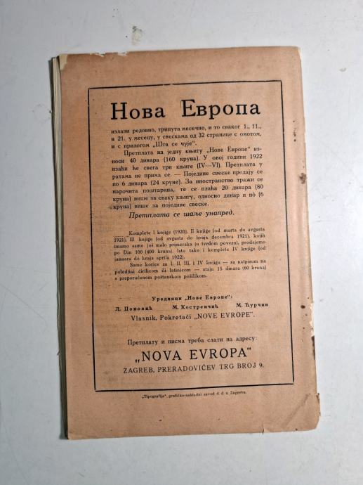 Nova Evropa ( Knjiga V.: broj 4. / 1922. )