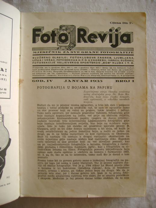 Foto Revija; mjesečnik za sve grane fotografije 1935. - uvezano kompletno godište, svih 12 brojeva, izdavač Konzorcij Foto Revija, Zagreb 1935. godine, 15 x 22 cm, bogato ilustrirano.
