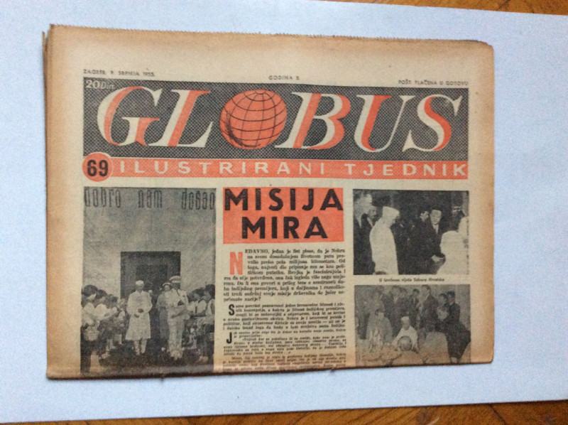 GLOBUS, STARI ČASOPIS, ILUSTRIRANI TJEDNIK, GODiNA 2 BROJ 69, 1955.