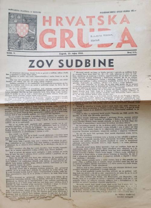 Hrvatska gruda: broj 212/1944Glavni urednik: Ante Jedvaj