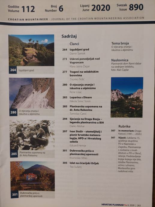 Hrvatski PLANINAR 6 , 2020. g. / Gl. i odg. urednik : Alan ČAPLAR